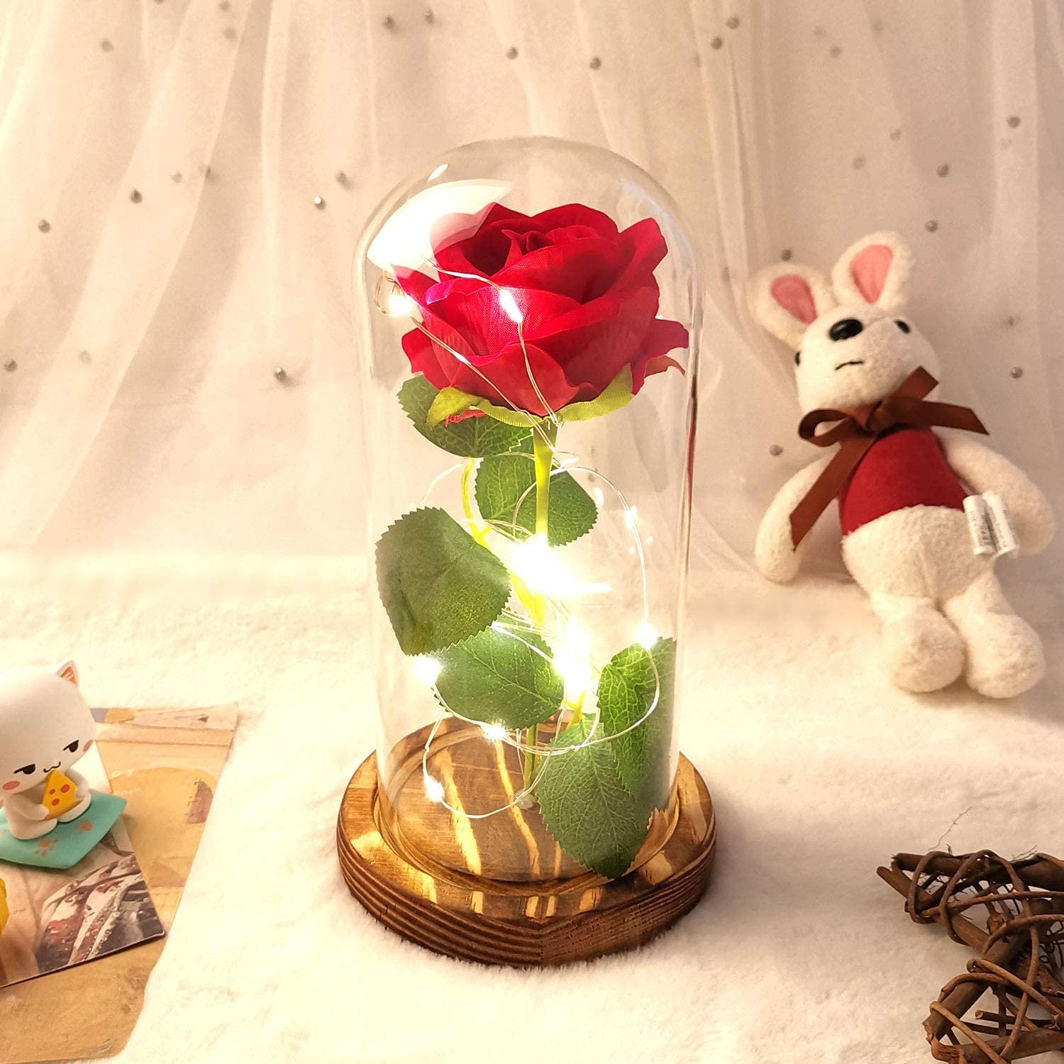 Flower Gold Gift Beauty And The Beast Rose Kit Gift Lasts Forever In A Glass Dome With Led Lights Red Rose For Her Women Girl Mothers Day Valentine S Day Wedding Anniversary Flower